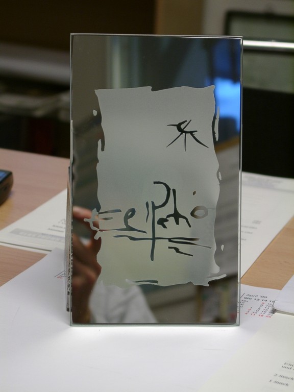 (Facett-Schliff oder Muschelkante) oder mit verschiedenen Sandstrahlmotiven.